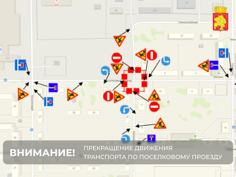 С 20:00 27 сентября до 08:00 28 сентября 2025 года будет временно прекращено движение автотранспорта по Поселковому проезду — от перекрёстка с ул. Поселковая до перекрёстка с ул. Калинина.