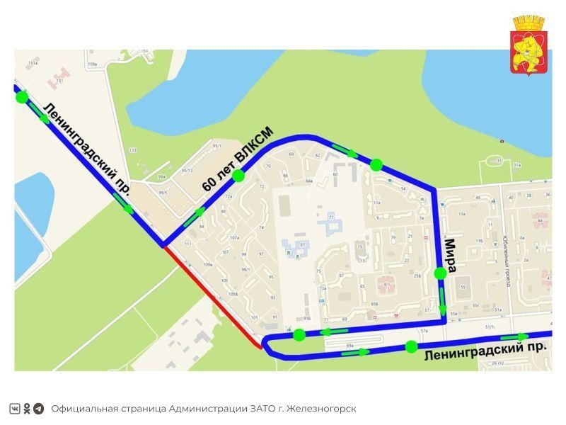 На время проведения работ движение общественного транспорта будет осуществляться по улицам 60 лет ВЛКСМ, пр-т Мира в соответствии со схемой на фото.